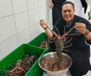 Chef Ahmad Supardi dengan bahan seafood. (foto/nanang)