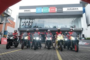 Surabaya, (pawartajatim.com) – Arek-arek Suroboyo Jumat (22/7) dikejutkan dengan iring-iringan sepada motor Aprilia yang melintas di jalan utama kota ini. Sedikitnya, ada sepuluh sepeda motor Aprilia SR-GT diperkenalkan managemen PT Piaggio Indonesia untuk wilayah Surabaya lewat test drive keliling jalan protocol.