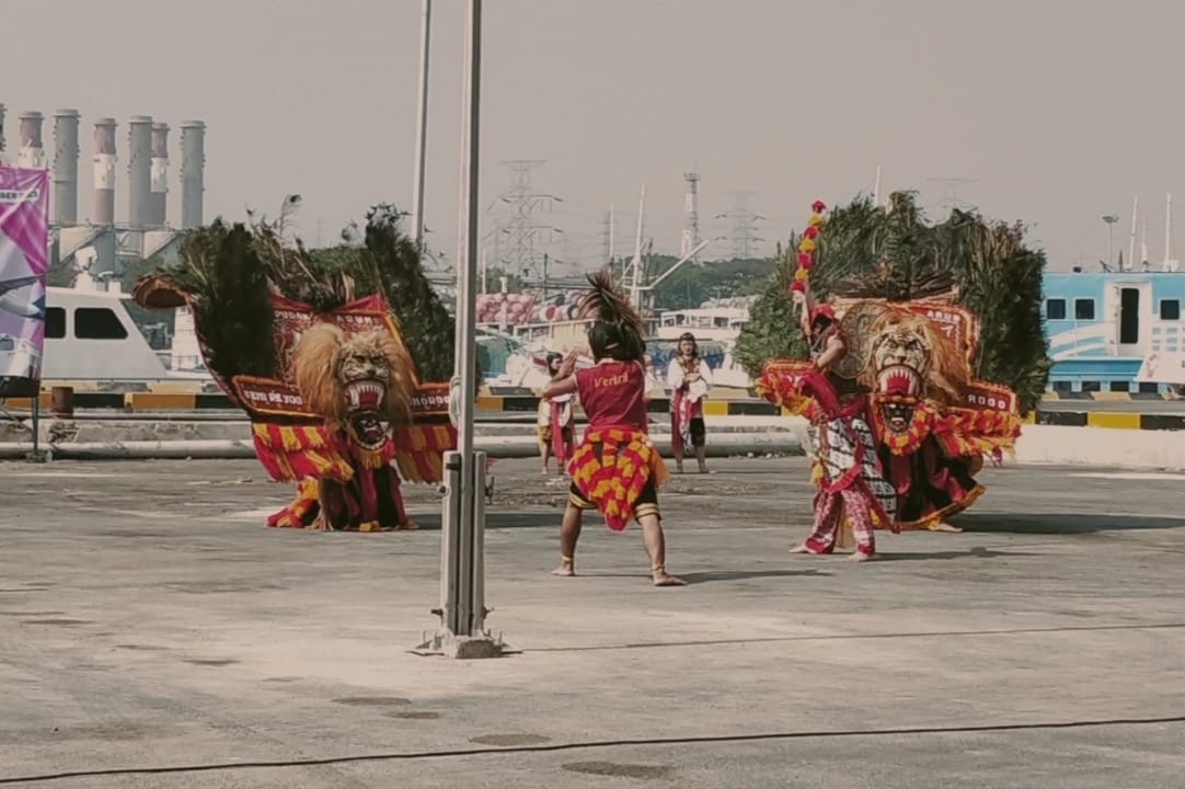 “Kesenian Reog ini merupakan penutup dari serangkaian hari perhubungan di Gresik. Dan kami ingin turut melestarikan budaya milik bangsa ini,” kata Capt. M. Firmawan yang juga sebagai Kepala Seksi Lala, Angkutan Laut dan Usaha Kepelabuhanan kantor KSOP usai upacara di dermaga umum Pelindo Gresik, Minggu (17/9).