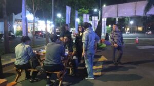 Banyak tamu hadir bersama komunitasnya, dan mereka merasa cocok dengan suasana santai yang ada di tengah keramaian lalu lintas kendaraan di pusat kota Surabaya. (nanang)