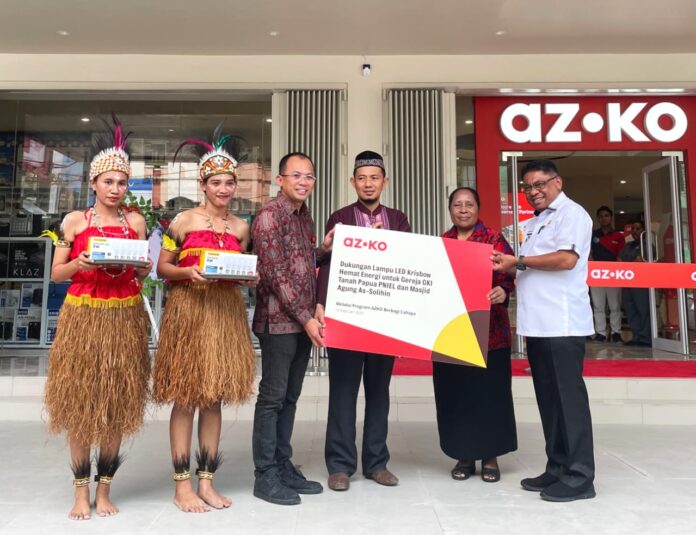 Selain membuka toko baru, Azko juga menjalankan program sosial Azko Berbagi Cahaya dengan mendonasikan Lampu LED Krisbow Hemat Energi ke dua rumah ibadah terbesar di Abepura, yakni Gereja GKI Tanah Papua PNIEL dan Masjid Agung As-Sholihin.