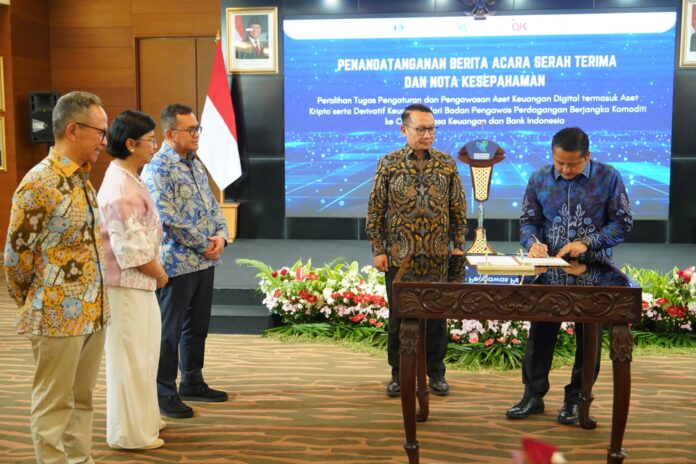 Jakarta, (pawartajatim.com) – Kementerian Perdagangan melalui Badan Pengawas Perdagangan Berjangka Komoditi (Bappebti) mengalihkan tugas pengaturan dan pengawasan aset keuangan digital termasuk aset kripto serta derivatif keuangan kepada Otoritas Jasa Keuangan (OJK) dan Bank Indonesia (BI). Pengalihan tugas pengaturan dan pengawasan ini ditandai dengan penandatanganan Berita Acara Serah Terima (BAST) dan Nota Kesepahaman (NK) di Kantor Kementerian Perdagangan di Jakarta Jakarta (10/1).