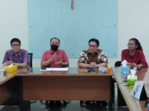 Sekretaris Pengurus Yayasan Pendidikan dan Pengajaran Indonesia/YPPI, Hokman Subroto (kiri), Pelaksana Kegiatan Yayasan, Budi Hermawan, SE., MTCSOL (no 2 dari kiri), Bendahara YPPI, Arief Setiyadi, SE (no 2 dari kanan) dan Pelaksana Kegiatan Yayasan, Yuli Setyarini, SE., MA (kanan). (foto/bw)