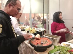 Hidangan khas Timur Tengah seperti chicken shawarma lengkap dengan roti pitta dan tortilla, nasi mandhi. Untuk menu yang lain tersedia beragam, ada noodle station dengan pilihan kuah beef brooth, Singapore laksa maupun tom yum, dengan kondimen lengkap.