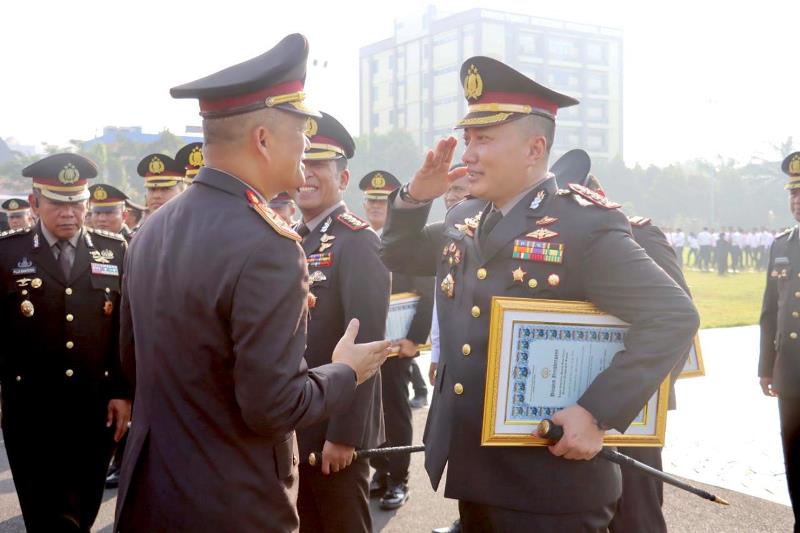 Kapolresta Banyuwangi Kombes Pol. Nanang Haryono menerima penghargaan dari Kapolda Jatim Irjen Pol. Imam Sugianto. (Foto/Humas Polresta Banyuwangi)