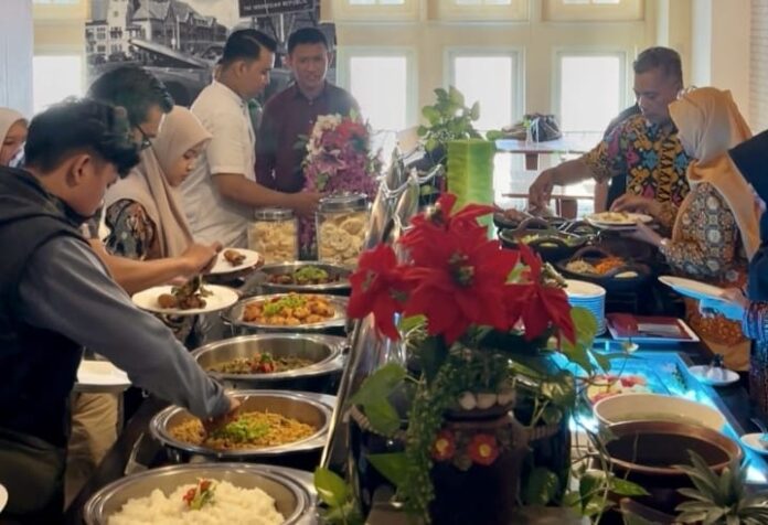 Pengunjung iftar sedang menikmati aneka menu hidangan yang lengkap dan lezat. (foto/ist)