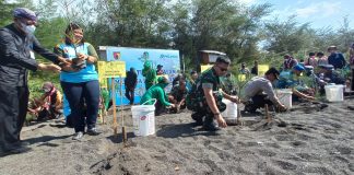 Cegah Abrasi, Personel Kodim Banyuwangi Tanam 5.000 Mangrove di Pesisir Surganya...