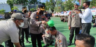 Naik Pangkat, Puluhan Anggota Polresta Banyuwangi Disiram Air Bunga