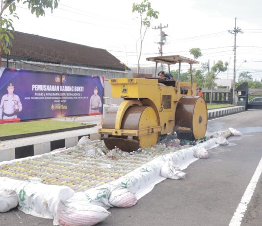 Ribuan Botol Miras Dimusnahkan di Halaman Mapolres Blitar