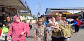 Tanpa Ragu, Kapolres Blitar Gendong Peserta Sunat Penyandang Lumpuh Otak