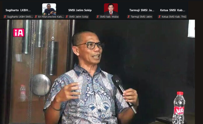 Acara yang berlangsung secara hybrid ini dibuka oleh Ketua Umum SMSI, Firdaus, yang menekankan pentingnya pemahaman hukum di era media digital. “Teman-teman media baru jangan sampai terperosok dalam pasal UU ITE. Mari kita pahami bersama agar bisa terus berkarya secara bertanggung jawab,” ujarnya.