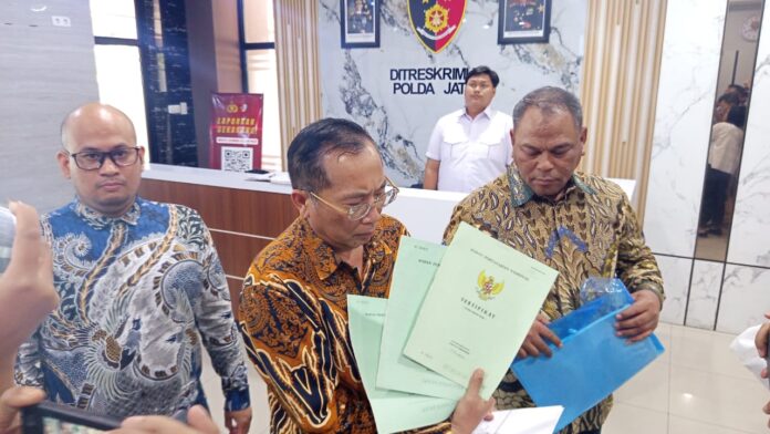 Surabaya, (pawartajatim.com) – Rahmad Muhajirin, suami dari Wakil Bupati Sidoarjo, Mimik Idayana, penuhi panggilan penyidik Direktorat Reserse Kriminal Umum (Ditreskrimum) Polda Jatim Jum’at (20/2). Terlapor dimintai keterangan atas dugaan penggelapan sertifikat yang dilaporkan Bupati Sidoarjo, Subandi.
