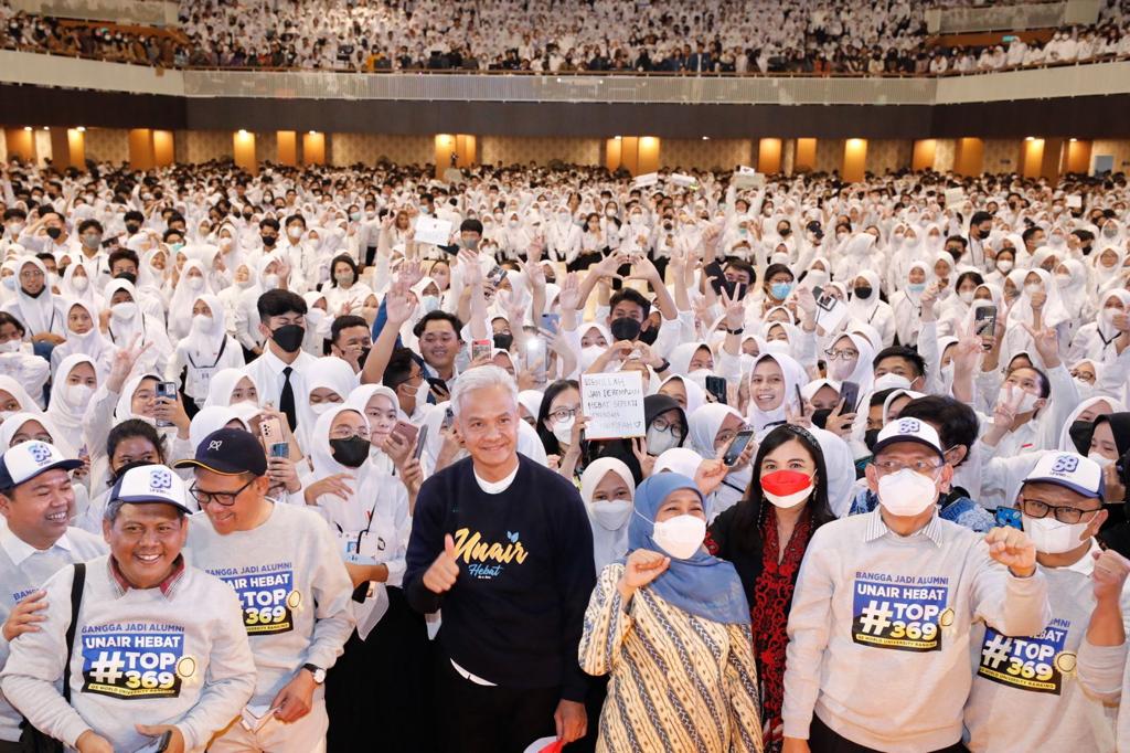 Sementara itu, Rektor Unair, Prof Mohammad Nasih, mengucapkan terimakasih atas kehadiran Ganjar ke kampus Unair. Menurut dia, ini peristiwa langka dimana para tokoh nasional bisa berkumpul dan memberikan motivasi pada mahasiswa baru.