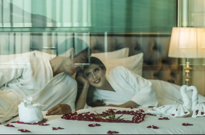 Menginap dengan dekorasi honeymoon untuk menambah suasana romantis saat menginap, pasangan pengantin disambut dengan hiasan bunga mawar merah dan handuk berbentuk angsa saat memasuki kamar.