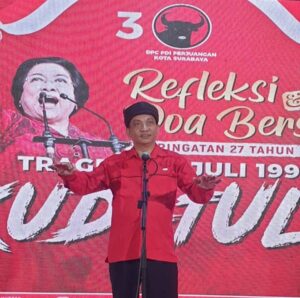 Surabaya, (pawartajatim.com) – Peristiwa 27 Juli diingat sampai mati. Lembaran sejarah perpolitikan di tanah air pernah tercoreng oleh Insiden berdarah yang terjadi pada Sabtu 27 Juli 1996. Hal itu dipicu oleh perebutan kantor Partai Demokrasi Indonesia (PDI) pro Megawati di Jl. Diponegoro No.58 Jakarta oleh pendukung PDI Soerjadi yang didukung penuh aparat TNI, Polri atas perintah rezim Soeharto.
