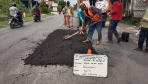 “Laporan rusaknya jalan di ruas ini juga sudah kami terima secara langsung dan juga dari Call Center Gresik Akas 112, kami langsung lakukan survey dan pengukuran sejak Rabu kemudian Kamis kita buatkan inlet manual untuk saluran air, karena badan jalan lebih rendah dari drainase.