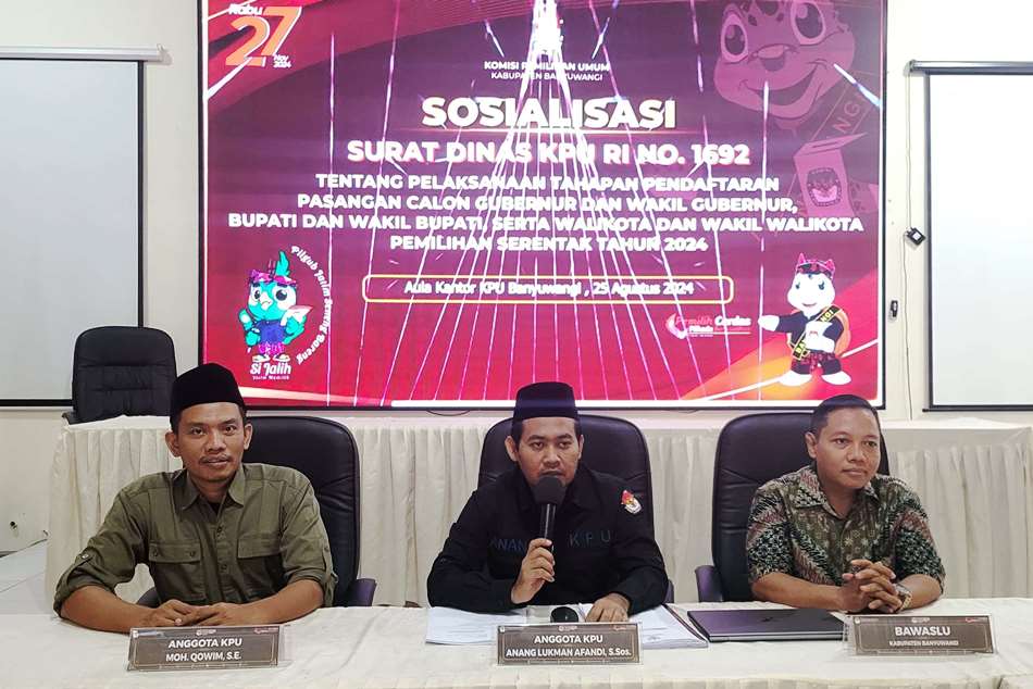 Sedangkan dari KPU Banyuwangi hadir tiga komisioner. Masing-masing, Anang Lukman Afandi, Edi Syaiful Anwar, dan Mohammad Qowim.
