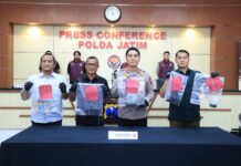 Surabaya, (pawartajatim.com) – Kecelakaan dua mobil terjadi di Jalan Ahmad Yani, Surabaya Jumat (10/2) malam. Dalam kecelakaan ini, satu mobil mewah berwarna merah mengalami nasib naas hingga nyemplung ke dalam sungai.