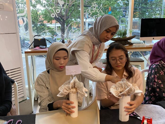 Surabaya, (pawartahatim.cim) – Aktifitas kreatif menyenangkan untuk akhir pekan kini sedang digemari oleh perempuan, khususnya di Kota Surabaya. Pada Sabtu (30//11) lalu, Maxone Dharmahusada Surabaya berkolaborasi dengan Karita untuk memberikan pengalaman berkesan melalui kegiatan merangkai buket hijab.