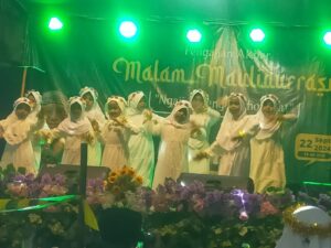 Rupanya di sepanjang jalan tersebut, tepatnya di sekitar depan Masjid Al Hidayah sedang di pasang panggung untuk acara peringatan Maulid Nabi Muhammad SAW. Benar saja Minggu (22/9) sekitar pukul 19.00 WIB bakda Shollat Isya, warga dari berbagai kampung di RW 1 sampai RW 16 Kelurahan Ngagel Rejo, seperti Ngagel Rejo, Ngagel Dadi, Ngagel Mulyo, Ngagel Tirto Bratang, Krukah, Baratajaya dll, berduyun-duyun mendatangi lokasi acara tersebut.