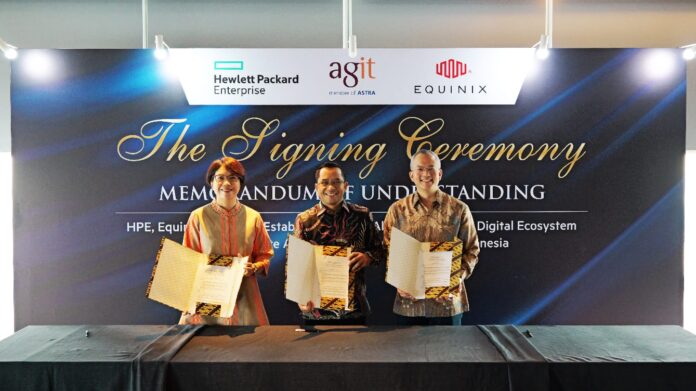 Jakarta, (pawartajatim.com) — Hewlett Packard Enterprise (HPE), Equinix Inc., dan PT Astra Graphia Information Technology (AGIT) resmi menandatangani nota kesepahaman (MoU) Kamis (10/7) di Jakarta, untuk memulai kerja sama strategis menghadirkan solusi private cloud berbasis kecerdasan buatan (AI). Kolaborasi ini ditujukan untuk mendukung transformasi digital bisnis di Indonesia sekaligus mendorong pertumbuhan ekonomi nasional.