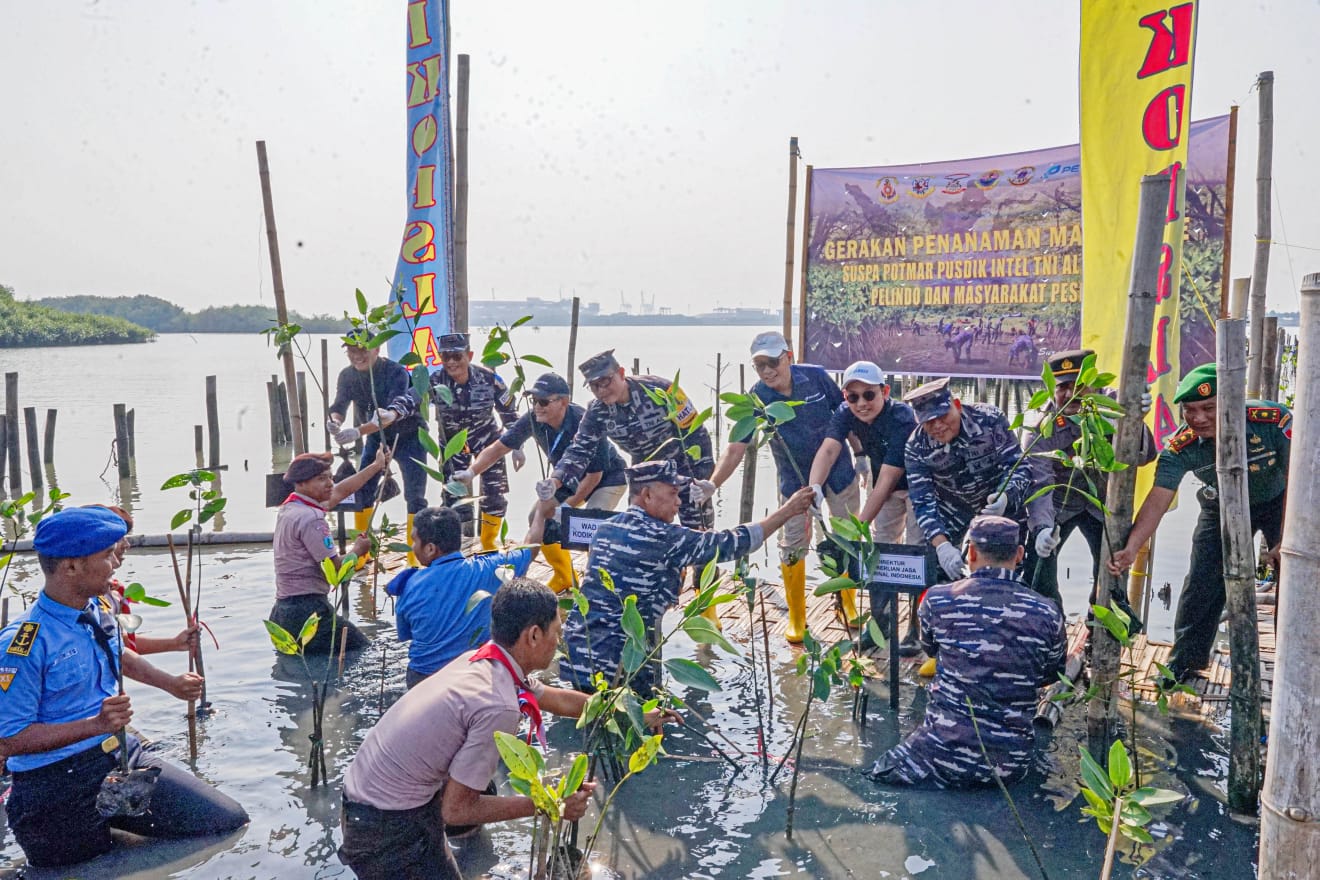 Tak kurang dari 200 peserta lintas instansi, korporasi, dan organisasi tersebut mengikuti kegiatan ‘Gerakan Penanaman Mangrove TNI AL bersama Pelindo dan Masyarakat Pesisir’ yang diinisiasi oleh Pusat Pendidikan Intelejen Maritim TNI AL di destinasi wisata baru di Kota Pahlawan, Adventure Land Romokalisari.