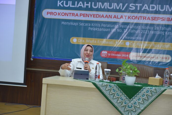 “Untuk itu, kami mengundang Kepala Perwakilan BKKBN Provinsi Jawa Timur untuk bisa memberikan penjelasan terkait kebijaksanaan pemerintah tersebut agar lebih jelas dan tidak menimbulkan multi tafsir yang sangat berpotensi terjadinya menyalahgunakan,” kata Evi, pada acara Kuliah Umum /Stadium General Pro Kontra Penyediaan Alat Kontrasepsi bagi Pelajar dan Remaja menyikapi secara Kritis Peraturan Pemerintah nomor 28 Tahun 2024 tentang Peraturan Pelaksanaan UU nomor 17 Tahun 2023 Tentang tentang Kesehatan di Aula Mas Mansyur Lt 7 GKB 2 Universitas Muhammadiyah Sidoarjo, Rabu ( 16/10/2024).