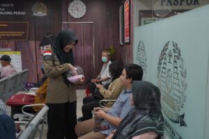 “Kantor Imigrasi Kelas I TPI Tanjung Perak di pekan kedua ini membuka kuota sebanyak 74 orang. Dalam rangka memeriahkan Hari Bhakti Imigrasi (HBI) ke-74 kami hadir dengan memberikan layanan Paspor Simpatik dengan menyediakan berbagai souvenir dan 2 paspor gratis bagi pemohon yang beruntung,” kata Kepala Kantor Imigrasi Kelas I TPI Tanjung Perak, Verico Sandi.