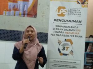 Ochi, salah satu pejabat di LPS II Surabaya, mengajak anak-anak panti asuhan untuk lebih mengenal LPS. Mulai dari tugas pokok LPS dan perlunya menyimpan uang di bank. Karena uang nasabah yang disimpan di bank akan aman.