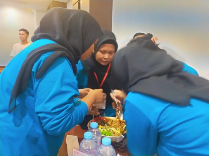 Nah, dalam rangka menyambut HUT RI ke-79 ini, Hotel Primebiz yang terletak di Gayung Kebonsari ini menggelar Mangan Cuk. Yaitu, lomba makan nasi goreng Jancuk. Lomba digelar Sabtu (10/8) dan diikuti oleh belasan kelompok peserta yang terdiri dari 4 orang.