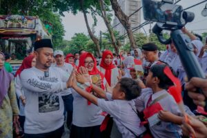Orang nomor satu di Kabupaten Gresik tersebut tak henti-hentinya melambaikan tangan dan menyapa warga masyarakat yang menyemut di sepanjang rute pawai. Memasuki Jalan Panglima Sudirman, rombongan konvoi disambut ratusan pelajar yang berdiri di sepanjang pendestrian jalan. Mereka tampak melambai-lambaikan bendera merah putih sambil mengucapkan selamat.