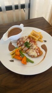 “Menu makanan dirotasi setiap seminggu sekali. Nasi goreng buto ijo dan pizza dengan topping coklat toblerone, atau keju adalah menu favorit disini,” ungkap pecinta kuliner nasi bebek, dan western Beef Welington ini.