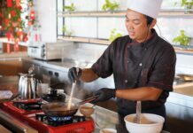 Chef hotel sedang menyajikan langsung menu masakan. (foto/ist)