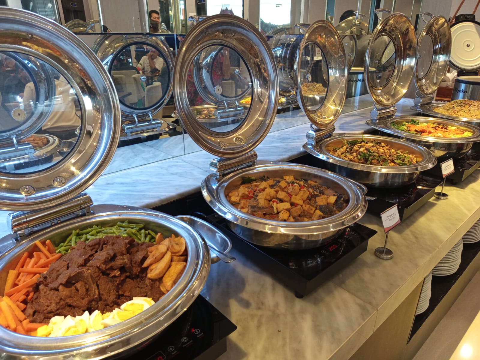 Seperti bistik daging, aneka botok, macam-macam sayur, tahu campur, lontong balap, sate kerang. ditambah kue tradisional seperti klepon, nogosari, aneka cookies, buah segar, salad, kurma, es cream, coklat, dan masih banyak lagi.