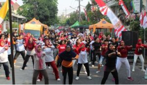 Meriahnya senam aerobik di Jalan Jambi yang digelar RW 05 Kelurahan Darmo Minggu (27/8). (foto/ist)