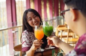 Sementara itu, Kefin yang awalnya bingung memilih minuman, akhirnya memutuskan mencoba Green Detox. “Tadi bingung mau pesan apa, terus iseng nanya ke staf restoran. Disaranin coba Green Detox, kirain rasanya bakal aneh karena ada pokcoy-nya. Eh, pas dicoba malah segar banget! Rasa pokcoy-nya ringan, ketutup sama jeruk dan lychee. Jadi enak banget, beneran cocok buat yang mau minuman sehat tapi tetap nikmat,” ungkap Kefin.