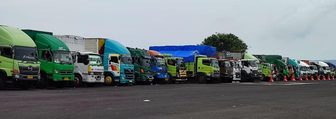 Sembari menunggu dibukanya pelabuhan, mereka bersantai, beralaskan kardus di bawah pantat truk. “Kalau di sini enak. Besok waktu pelabuhan sudah dibuka, tidak perlu antre lama-lama buat naik kapal,” ujarnya.