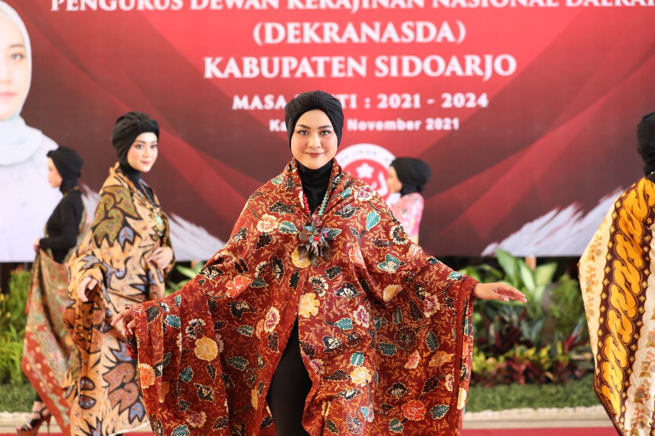 Tampil Yuk Muslimah Sidoarjo, memakai busana batik berbagai motif dilengkapi aksesoris yang merupakan karya dari pengrajin UMKM Sidoarjo. Bahkan, Ketua Dekranasda Sidoarjo Sa’adah Ahmad Muhdlor, turun sendiri menata dres code busana yang dipakai para model Yuk Muslimah.
