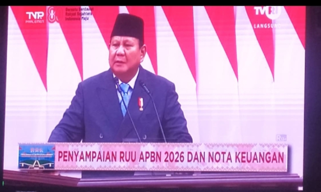 Pidato kenegaraan Presiden RI Prabowo Subianto yang didengarkan dan diikuti seluruh pejabat di Indonesia secara paripurna. (foto/sam)