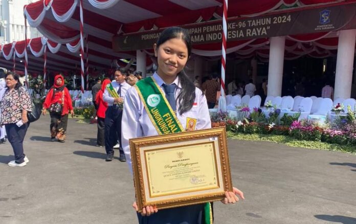 Salah satu kategori penghargaan yang diberikan, yakni Pelajar Pelopor Lingkungan 2024 yang diberikan kepada 13 pelajar setingkat Sekolah Menengah Pertama (SMP). Salah satunya, diterima Queen Anneysa Kabeer Lukito, pelajar Kelas 8 SMP Negeri 1 Surabaya.