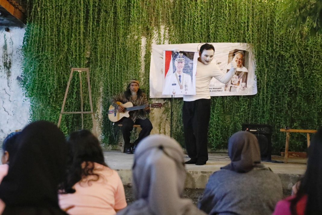 Sukarelawan Ganjar gelar pertunjukan pantomim di Trenggalek. (foto/ist)