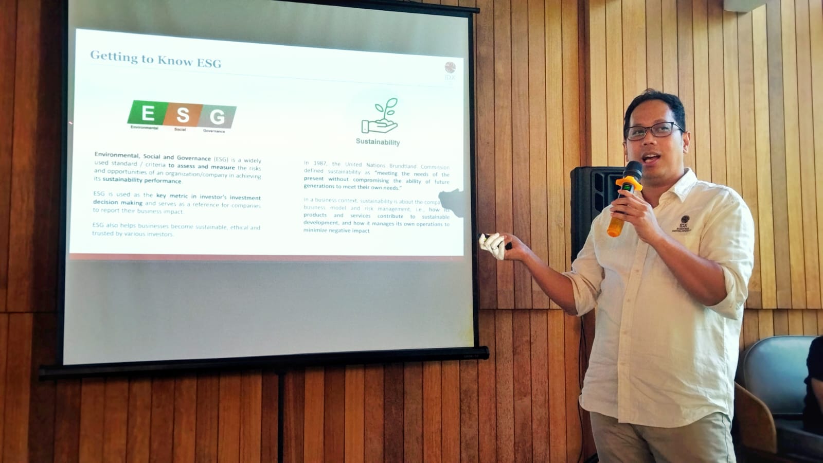 Kepala Divisi Pengembangan Bisnis 2 BEI, Ignatius Denny Wicaksono, menyatakan, penerapan ESG dalam pasar modal merupakan salah satu langkah penting untuk memastikan bahwa pertumbuhan ekonomi Indonesia tidak hanya berfokus pada keuntungan finansial.