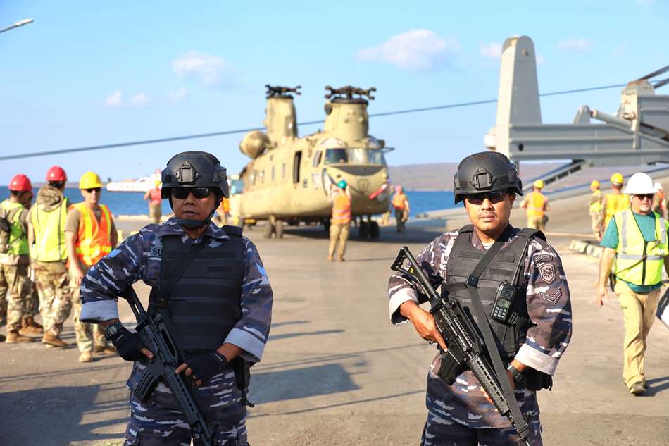 Personel TNI AL juga membantu proses bongkar dari kapal menuju pelabuhan. Ketatnya pengamanan ini akan terus berlangsung hingga proses bongkar seluruh peralatan tantara AS selesai. “ Sesuai petunjuk pimpinan, kami menggelar pengamanan proses bongkar peralatan militer AS mulai H-1 hingga selesai,” kata Komandan Pangkalan TNI AL (Danlanal) Banyuwangi, Letkol Laut (P) Hafidz.
