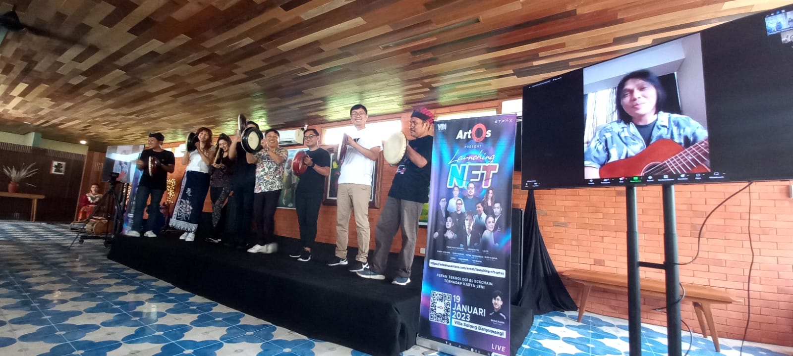 Peluncuran NFT di Banyuwangi dihadiri penyanyi Sania. Ada juga, penyanyi Once Mekel dan Yauni Shara yang hadir secara virtual. Mereka mengaku sangat beruntung bisa berkolaborasi dengan pelukis Banyuwangi dengan teknologi NFT ini. (udi)