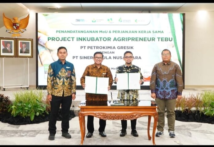 Gresik, (pawartajatim.com) – Perusahaan plat merah ini terus menebar kebaikan. Kali ini perusahaan penghasil utama pupuk ini turut mendorong regenerasi petani tebu yang pada akhirnya dapat meningkatkan produktifitas gula. Petrokimia Gresik, perusahaan Solusi Agroindustri anggota holding Pupuk Indonesia mendukung program “Agripreneur Tebu” sebagai komitmen untuk mendorong regenerasi petani dan mewujudkan swasembada gula nasional.