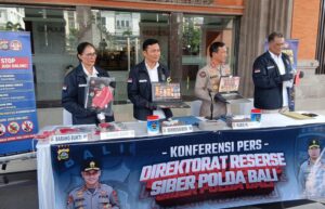 Denpasar, (pawartajatim.com) – Direktorat Reserse Siber (Ditressiber) Polda Bali berhasil mengungkap kasus judi online (judol) pada Minggu (12/4/2026) pukul 15.45 Wita di Benoa, Kuta Selatan (Kutsel), Badung. Menurut Direktur Reserse Siber (Dirressiber) Polda Bali Kombes Pol. Aszhari Kurniawan dalam konferensi pers di Mapolda Bali, Rabu (29/4/2026), jajarannya menetapkan empat tersangka dalam kasus judol ini. Tersangka pertama berinisial IJT (23), kedua RSD (22), ketiga berinisial MGB (22).