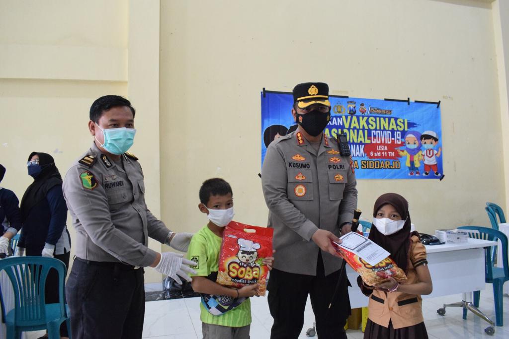Sidoarjo, (pawartajatim.com) – Memasifkan vaksinasi bagi anak usia 6 sampai 11 tahun, Polresta Sidoarjo siap melayani anak digerai maupun posko siaga vaksinasi 24 jam. Seperti disampaikan, Kapolresta Sidoarjo Kombes Pol Kusumo Wahyu Bintoro, usai meninjau vaksinasi anak usia 6 sampai 11 tahun di Gedung Serbaguna Polresta Sidoarjo, Jumat (17/12).