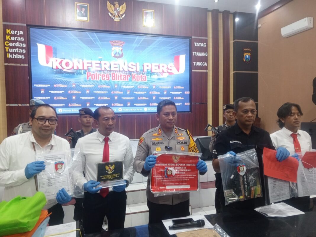 Uang 10 persen dari total pinjaman diserahkan pada pelaku. “Kalau sudah bayar, rumah korban ditempeli stiker seperti ini. Biar korban percaya” terang Kapolres Blitar Kota AKBP Danang Setiyo Pambudi Sukarno SH sambil menunjukkan stiker abal-abal buatan pelaku pada sejumlah wartawan Senin (28/10/2024).