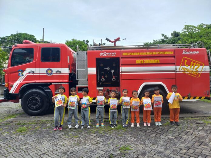 Surabaya, (pawartajatim.com) – Pagi itu, puluhan bocah siswa-siswi TK Tunas Harapan Surabaya terlihat berkumpul di halaman kantor Dinas Kebakaran Pemadam Kebakaran Surabaya 1V di kawasan Wiyung Kamis (30/1/2025). Ada apa?