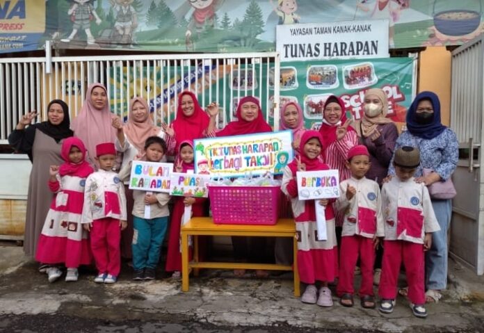 Surabaya, (pawartajatim.com) – Bagi-bagi takjil di bulan suci Ramadhan, tidak hanya dilakukan instansi pemerintahan, swasta, mahasiswa dan organisasi kemasyarakatan/ormas. Tetapi menyasar siswa-siwi yang masih bocah, wali murid dan guru TK Tunas Harapan Kamis (20/3/25).